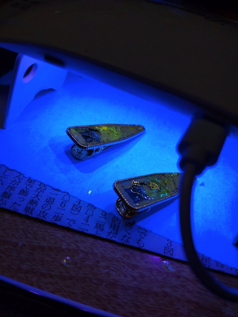 昨日からしっかり手袋はしてるけど……でも手袋してると、かえって手元が狂ってレジン付いちゃったりするんだが😂