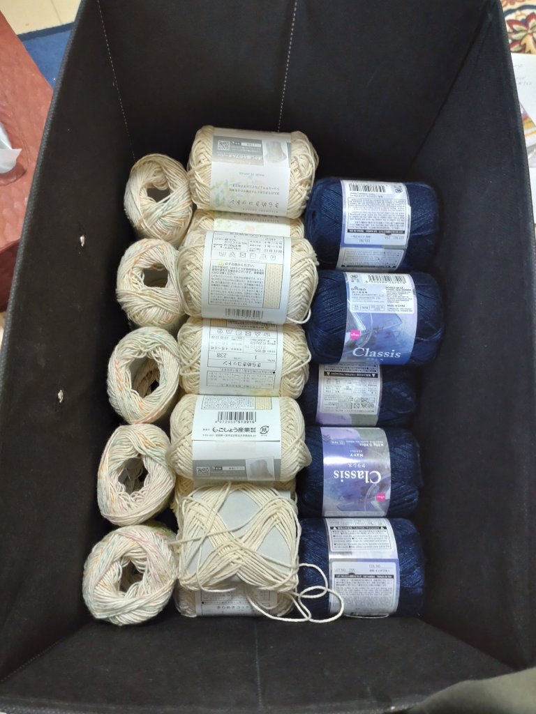 何故か100均のサマーヤーンの棚が既に品薄である。