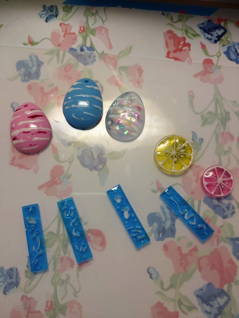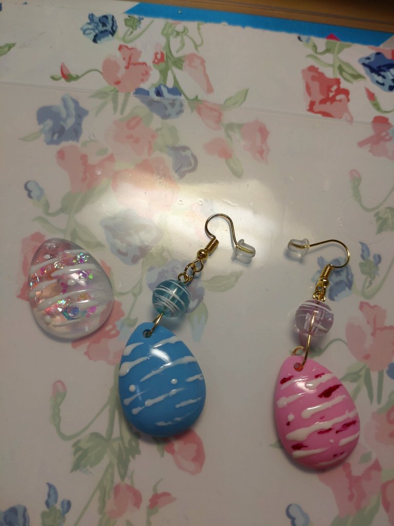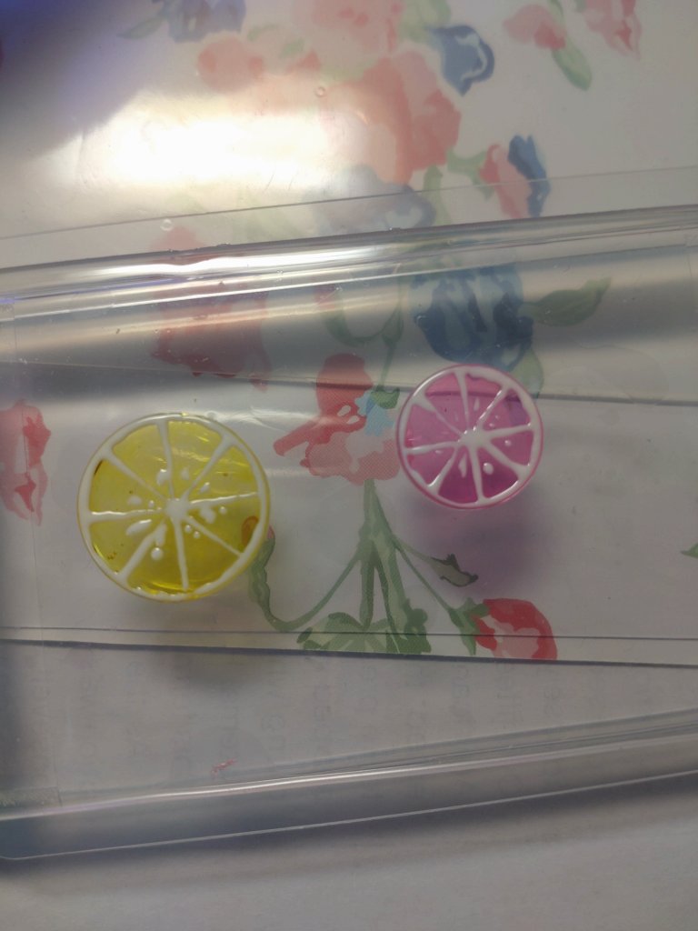 ハンドメイド レジン練習43 2023年6月8日2023年6月8日 汀 今日はYoutubeで見たものを作りたい。 ピアスとヘアピンを作る! レモンとピンクグレープフルーツ……大きさ的には逆だった……。 ピアスはいつものモールド……なんだかんだで一番気に入ってるモールドかも。訳分からん穴あき具合がꉂ🤣𐤔 これを描きたかった! 全部でこれだけ。上のを写真撮り忘れた💦 これから工具タイム〜! 丸カンと格闘! 花模様の青ビーズがなくなったので、パールに。Tピンがなかったのでできなかったが、長さをもう少し足したかったなぁ😭 ヨーヨー柄〜!夏っぽくていいかと思ったんだけど。1個余った💦 裏がなー……丸みを足して表と同じように描いた方がいいよなぁ……要改良。 冷凍ケーキなんだけど、結構美味しい(*´~`*)ŧ‹”ŧ‹”ŧ‹”自然解凍でスポンジは柔らかくてなかなかいける! 共有: X で共有 (新しいウィンドウで開きます) X Facebook で共有 (新しいウィンドウで開きます) Facebook いいね 読み込み中… 関連 投稿者: 汀 ハンドメイド好きなおばちゃん 汀 の投稿をすべて表示 共有: X で共有 (新しいウィンドウで開きます) X Facebook で共有 (新しいウィンドウで開きます) Facebook いいね 読み込み中…