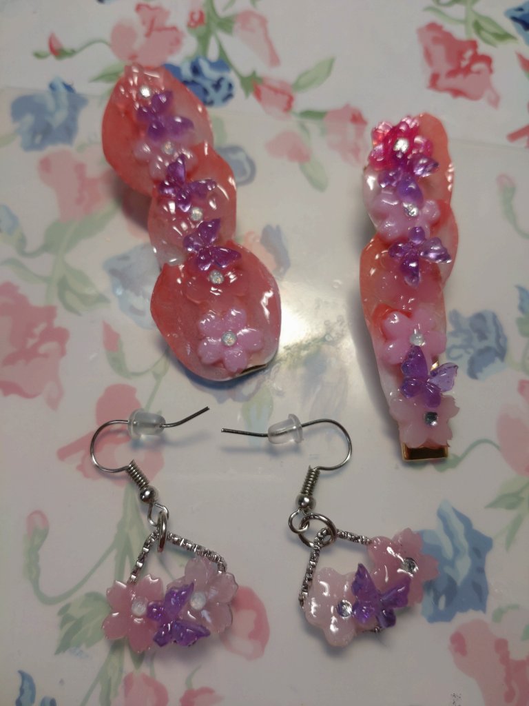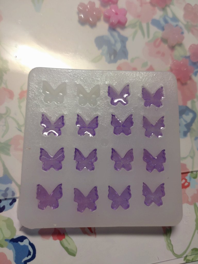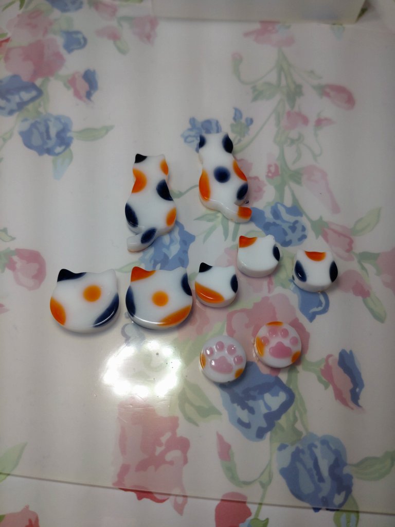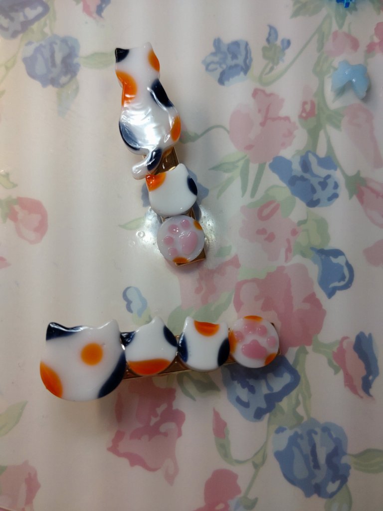 ハンドメイド レジン練習44 2023年6月12日2023年6月12日 汀 練習とはいえ、今日は実験はしない。 Seriaでやっと買えたこのモールド。 ヘアピンを作る。 そうそう失敗ばっかり作ってられないのである。 三毛猫しか思いつかなかった(笑) なかなか可愛い♥️ 次に桜のヘアピンを。 桜に蝶が舞うイメージで。 こうなった〜❣️ 猫の方はこんな感じに。 なかなか良き👍 アフタヌーンティーのアールグレイ&オレンジキャラメルスフレ。しかし食べてみたら紅茶の味はしなかったな〜。オレンジ強め🍊めちゃ美味しかった😋 共有: X で共有 (新しいウィンドウで開きます) X Facebook で共有 (新しいウィンドウで開きます) Facebook いいね 読み込み中… 関連 投稿者: 汀 ハンドメイド好きなおばちゃん 汀 の投稿をすべて表示 共有: X で共有 (新しいウィンドウで開きます) X Facebook で共有 (新しいウィンドウで開きます) Facebook いいね 読み込み中…
