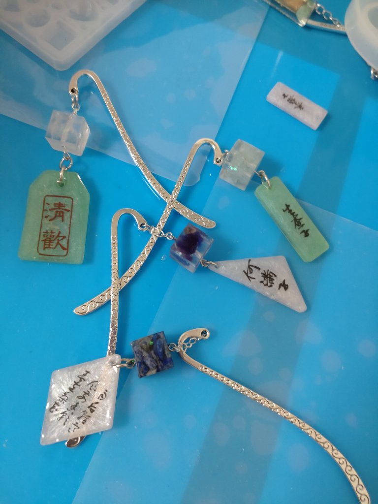 今日も天然石を使ってブックマーカーを作る〜٩(ˊᗜˋ*)و