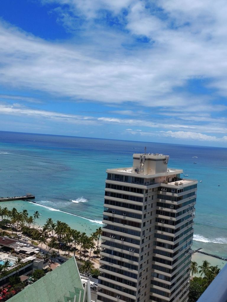 5年前はアメリカのドラマ「ハワイ5O(ファイブオー)」にどハマりしてたし、引っ張り回される観光旅行には疲れてたから、自分らでのんびりブラブラ出来るハワイは本当に楽しかった❤加えて寒くも暑くもないちょうどいい気候。着いてすぐは時差ボケ(夜9時のフライトで朝4時着)で、頭ぼーとしてたのに、ホテル着いた途端外の美しい海に目が釘付けに😍